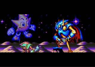 The endings are also altered to reflect the changes in story — the Japanese version shows the final bosses of the game on a desolate planet staring into space while a shadowy figure of Ristar looks back at them, while the foreign versions have Ristar jumping into the arms of his father. Also, the European version took advantage of the slower PAL pixel clock and plays at a higher resolution than the other versions of the game — it was one of the few Genesis titles to take advantage of this. That said, this resolution improvement is very minor and on most older televisions probably will not be noticeable due to overscan.
