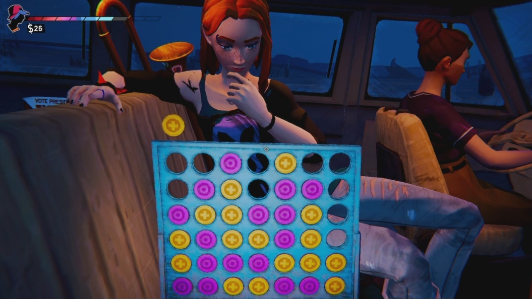 Another thing that might be surprising, given how tense the game’s atmosphere can be, is the amount of humor in the game. Even with the serious dystopian theme, there’s quite a cast of eccentric characters. Alex spits off some mad outdated slang, dog. Stan and Mitch, the goofy robbers have endless enthusiasm, chaotic energy and a willingness to pal around with and sometimes hire teens for their crazy schemes. Zoe dresses punk but plays the trombone. And Sonya Sanchez is the kind of character some love to hate.