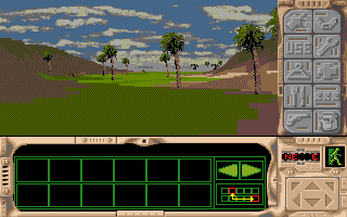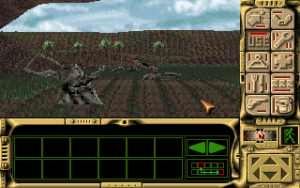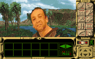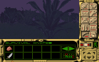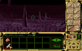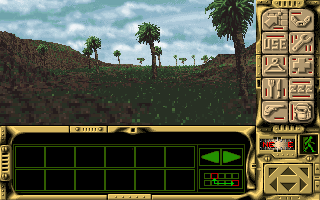 Robinson’s Requiem has different 3D rendering techniques depending on the platform. The Amiga, Atari Falcon, and Atari ST versions use simple dithered polygons and other flat surfaces, making it the weakest looking of all of the release. The DOS version uses a voxel engine, which is an improvement but adds to the visual cacophony that can make it hard to make out important items. The 3DO version features 3D texture mapped terrain, but the draw distance is extremely limited due to the large amounts of fog. The interface is poorly adapted for a controller too, requiring that you hold down a button to use the arrow for any of the main functions. This version also gives you a full map instead of requiring that you map out the land yourself. A Jaguar CD version was developed but cancelled before official release; it was eventually completed in 2011 and released by fans, being pretty close to the 3DO version but with a worse framerate. All versions use sprites for the characters. The DOS and 3DO versions are on CD, which includes FMV and voice acting for the introduction and all NPC interactions. Being a translation from a French game, both the translation and the English voice acting feels goofy and awkward, particularly the messages from Nina1. But it all comes together to add to the surreal vibes of this dangerous alien world.