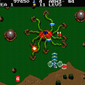 The game looks similar to MUSHA at a glance, but there are many, many differences that add up to a substantially different game. The power-up system is similar, though there are now four subweapons rather than three. The ARMs have been changed so that rather than selecting their behavior, they always hover just above the shoulders of your mecha. Despite their lack of versatility, they’re a little bit more powerful now, able to damage enemies if they touch them and absorb enemy fire. You can also charge and throw them like a boomerang, but since this requires that you temporarily stop firing your subweapon, this really isn’t all that useful.