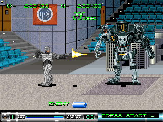 Ocean retained the RoboCop license for all of the subsequent console and computer versions, none of which were very good. Data East, however, was still able to create a sequel, solely for the arcades. It’s based on the second movie, of course, as RoboCop has to track down the evil Cain, a drug dealer whose brain has been implanted into a massive robot.