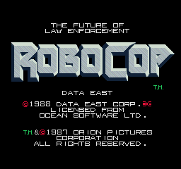 The RoboCop license was purchased by Ocean, a British company known for publishing (typically rather shoddy) movie tie-ins. There are actually three separate games based on the original movie. These include an arcade game, originally developed by Data East and ported to a few computer platforms by Ocean; a different game developed specifically for European computers as well as the Game Boy, which is a loose interpretation of the arcade game; and an NES game by Sakata SAS, a team who often worked with Data East on its NES games, which was ported to the TRS-Coco.