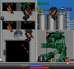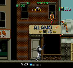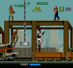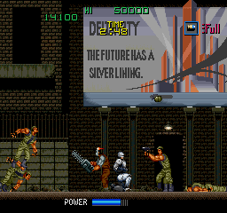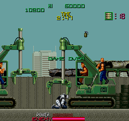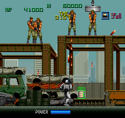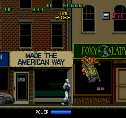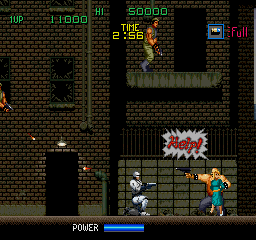 The arcade game looks and feels like other Data East arcade sidescrollers like Bad Dudes and Sly Spy (In one of the post-level congratulatory messages, you are even called a “bad dude”). While at the beginning, you can only punch bad guys, only a few screens in and RoboCop will draw his gun, which will remain drawn for the entire rest of the game.