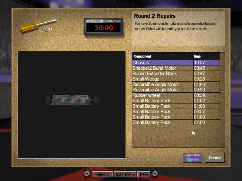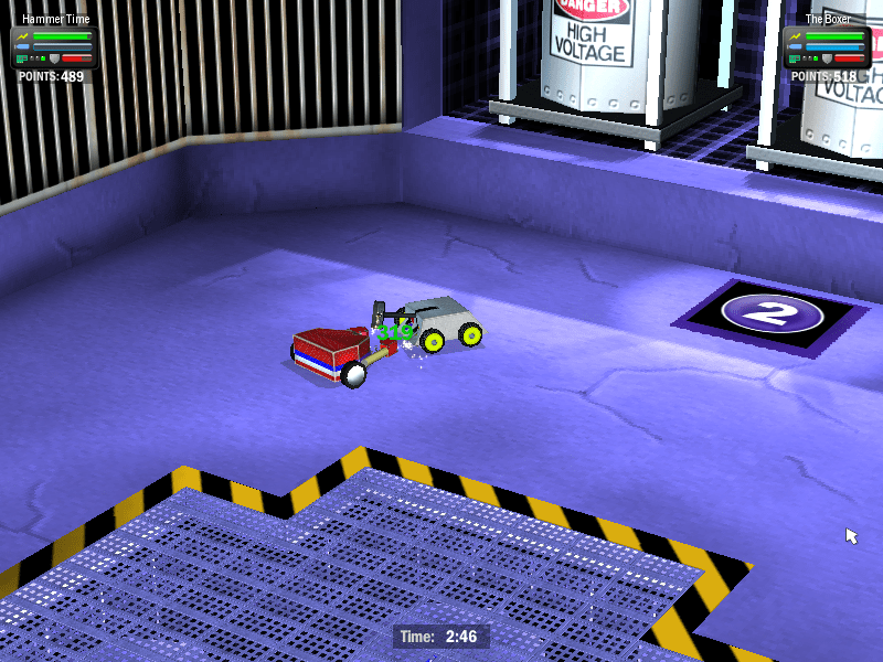Unlike Robot Arena, which allowed the player to drop in some batteries and attach things only to the outside of their robots, Robot Arena 2 provides full freedom to place parts anywhere on or within the 3D model of the chassis generated from the blueprint in the first step. Players can choose from a variety of motors of differing sizes, speeds, and power alongside new mechanical parts such as pneumatic pistons, hydraulic actuators, and “burst motors” which is the game’s way of simplifying complex mechanical designs behind hammers and flippers. Other menus within the Bot Lab contain weapons like saw blades and axes as well as extension rods to create things like sledgehammers and even defensive attachments such as armor plating and plows. Newcomers will genuinely feel like a kid in a candy store just simply browsing all there is to build with. It falls just short of being overwhelming because the designers didn’t overdo it with the parts system.