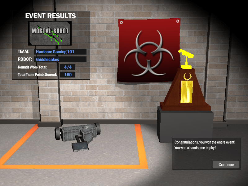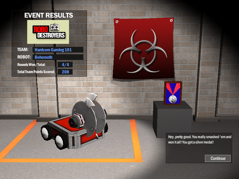 Construction of a robot is just advanced enough to remain easy for a layperson to understand while remaining powerful enough to allow expert players to fine tune their designs into something truly devastating. But the real test of how destructive a robot can be comes with the main event of combat. From within the Team HQ section of the game players can choose from various events that all take place in different arenas and with different battle styles. Some events will have you fighting on a rooftop in a one-on-one battle to the death while others will toss you into an empty parking lot with three other opponents in a hectic four-way melee where only one robot can come out victorious. If that’s not enough players can also set up their own events in Exhibition mode and choose from any arena and any opponents, even being able to mix weight classes so frustrations can be taken out by smashing smaller robots with the world’s biggest hammer.