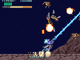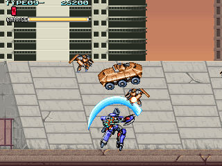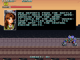 Rohga takes place two years after Vapor Trail. In the distant future of 2001, mechas are the most impressive technology that the military has to offer, with the most important mecha facilities located in Oceania. Coming back for revenge, DAGGER attacks the factories around Australia and New Zealand, and it’s up to you hop in your mecha and stop them.