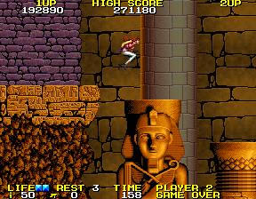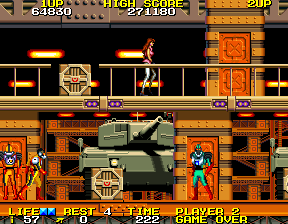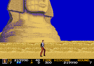 There are also small storyline scenes between the stages. The arcade version seemed unfinished at times, especially at the end of the fourth stage, where you suddenly when from an underwater base to the deserts of Egypt. At least this version shows the villain escaping on a submarine.