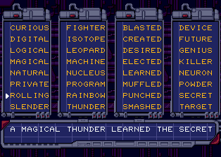 The Genesis version features an amusing password system, wherein seemingly random words are strung together to create nonsensically amusing phrases, sort of like code words. With eleven levels in the Genesis version, it’s certainly a meaty game, and being able to resume progress makes a difficult game less overwhelming. It also has one of the most puzzling sound tests in existence, where an alien band jams to your chosen song.