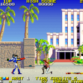Namco circa 1986 had some pretty nice arcade games under it belt, the most popular being Pac-Man and its variations, but also other classics like Pole Position, Galaga, and Dig Dug. At this time, Namco decided to branch out further and attack the side-scrolling action game market. The result was Rolling Thunder, one of the most influential action games to hit the ’80s arcades.