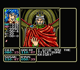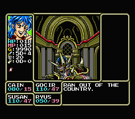 OASIS’s translation is a bit better in this game, and for the most part it’s easy to understand everything clearly. There are still some bugs, though, and one of them is pretty damaging. After defeating Azasort, the dialogue window displays a lot of gibberish text. Originally this would read that the monsters have left Fleart and the king returns. The most severe bug is in the character selection area. Because of some faulty code in the naming system, the game crashes if you choose a certain selection of characters. This means the game often resets after you have chosen your team. Even though the characters have no special skills, it’s quite annoying to constantly go name your character over and over until the right combination is found. Hopefully some translation group will go over these games one day to better the quality and fix the bugs.