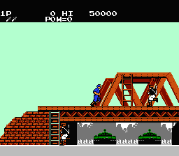 In typical 80s arcade fashion, Rush N’ Attack demands memorization and perfection to clear the game. While the game is fairly generous with checkpoints, running out of lives means starting the game right from the beginning. This means that knowing which enemies will appear in your path and what they can do is vital, as any contact with enemies and their attacks will instantly cost one of your three lives. About the only thing about that feels truly unfair is the fact that you jump by pressing up on the joystick, which can lead to accidental deaths every so often while trying to climb ladders. Despite this, the fact that you can finish a loop in somewhere around ten minutes makes it far less frustrating to start again on than other, similar games of its time.