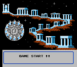 Well, the problem lies in the format. Instead of the pure side-scroller one would expect after the first stage, it’s a hybrid between action game and a turn-based RPG. The regular action sections are dirt simple, even though there are times when it’s just not possible to avoid getting hit. The actions sections are simple. Go forward, shoot the three enemy sprites available, try to avoid meteors, fail at it, jump over gaps, get shot by archers and then go up to a temple entrance. The only variety is found in special dimensions which some of the bosses teleport you to. While travelling through this part you may notice the “sevensenses” bar at the bottom. The bar can be used to replenish the Cosmo and Life bars once you reach the boss battle. It fills up slowly for every killed regular enemy and in larger chunks for the bosses. However, the game doesn’t like to see you making things too easy for yourself, so should you decide to find yourself a nice grind spot and start accumulating some sense points, the game literally drops a meteor on your head.