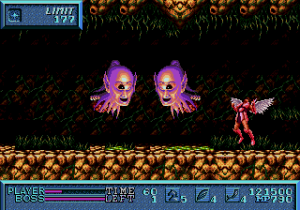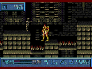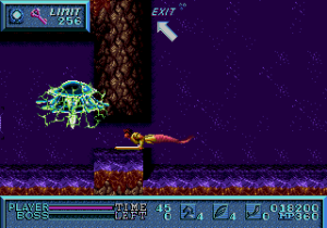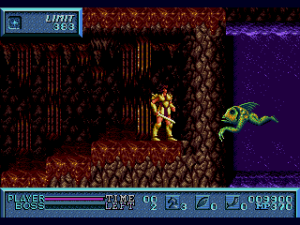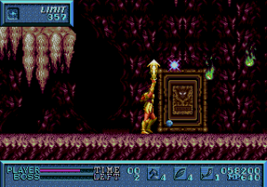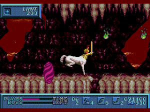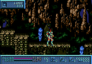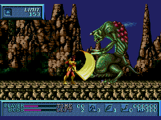 The graphics are about average for an early Genesis title. Macress’s large, realistically-proportioned sprite is reminiscent of Altered Beast, another game with a transformation gimmick, and some of the bosses and larger monsters look pretty cool, but the environments are often a little grainy. The skies look great, and the outdoor levels are generally nice, but you’ll spend far more time exploring caves and castles. There, the color schemes tend towards muddy browns and grays, though they do benefit from the more sinister atmosphere in the second loop. The soundtrack is similarly unexceptional for the most part. The intro and ending themes are quite nice, as are maybe two of the level themes, while the rest is just there. Though the game doesn’t say, some sources credit composer Toshiko Tasaki, who went on to work on a number of Shin Megami Tensei spin-offs.