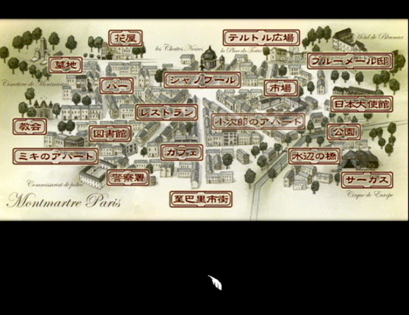 Mysterious Paris takes place after the events of Sakura Taisen 4, and follows the adventures of detective Kojirou Akechi and his sister, Chattes Noires performer Miki Akechi – both are playable characters. The story focuses on a series of mysterious disappearances of Chattes Noires performers, and much of the game plays out in LIPS-based adventure scenarios. The game does introduce a few innovations, such as a life bar (enough bad choices can eventually deplete it and get you a Game Over screen), first-person dungeon crawling, and rudimentary shooting events. It’s surprisingly well put-together, considering its peripheral status, with full-on anime sequences and good production values. But it is a bit odd to be running around locations from Sakura Taisen 3, and interacting with its cast of heroines and NPCs, with Ohgami and the Kōbu nowhere to be found.