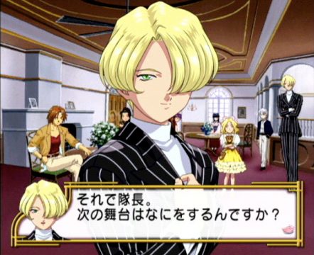 The setting is once again the imperial capital Tokyo, with the five pilots of the Paris Floral Assault Troupe joining the eight of the Imperial Floral Assault Troupe to form the (characteristic of ST4) ingratiatingly-named Ohgami Floral Assault Troupe. With a cast of thirteen heroines bouncing around, and a total of forty possible love triangle situations(because your save files from earlier games remember who you like in Tokyo and who you like in Paris), the game is short but extremely wide. Depending on who you pick between your two sweethearts, there is a special scene to cleanly resolve your relationship with the other. That reconciliation, combined with how chaste and platonic and oblique the portrayals of your relationships are anyway, successfully prevents Ohgami from looking like a slimy playboy. The final Koubu upgrade is to the Soubu (双武), “dual warrior” – a single overpowered mech piloted by Ohgami and your final heroine of choice, together.