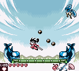 The country of Hinamoto is besieged by the Demon King and his army, throwing the once peaceful land into chaos. As Homuramaru, the prince of Hinamoto, your goal is to defeat the Demon King and save the country of Hinamoto. Homuramaru is also accompanied by a monkey named Hide and a raccoon named Yasu, who provide hints in each level. The adventure is bigger than you’d expect for a platformer on the GBC, spanning ten massive levels that contain plenty of puzzles. You’re also encouraged to revisit levels, since you unlock new abilities that can be used to collect health upgrades and coins you couldn’t get previously. In order to earn 100% completion, you’ll also have to complete levels fast enough to satisfy the game’s harsh ranking system, adding further replay value to an already comprehensive package.