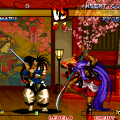 The home ports of Samurai Shodown IV were released in 1997. The Saturn version once again uses the RAM cart and maintains most of the animation with minimal load times, although unfortunately there’s a bit of slowdown with some of the bigger sprites. The PlayStation version, given the dubious “Special” subtitle, suffers from even worse animation and load times, although it’s not nearly as bad as the Samurai Shodown III port. At least the dull loading screens have been replaced with attractive art. Cham Cham has also been added to the playable character roster in this version, although she has no story mode. The Wii and PlayStation 2 ports as part of the Anthology are nearly perfect, but contain brief load times before fights.