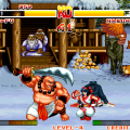 Samurai Shodown! 2‘s gameplay system is mostly unchanged from its predecessor’s, and it uses the same button scheme. Otherwise, Samurai Shodown! 2 attempts to mimic a downscaled 2D version of Samurai Shodown 64: Warriors Rage, with a dab of Samurai Shodown IV. The stages, mostly drawn from the 3D game, are instantly recognizable.