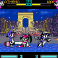 One of the main appeals of Samurai Shodown! is that it’s a self-parody of the series. It begins with rather hilarious intro with the cutesy character sprites used for this game, similar to the ones in other titles like SNK Gals Fighters and SNK vs Capcom. The fighters use intentionally goofy moves and animations (like the smoke replacing Kazuki’s usual fire attacks), and when a character is hit with a hard slash, they comically bounce all around the area. Fitting with the cutesy theme, the blood effects are gone, but there is a surprising amount of confetti.