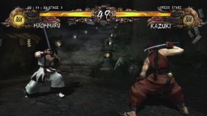 Sometime before 2008, SNK Playmore decided it was time to try bringing the series into the HD era as a true 3D fighting game. This was their second attempt at this: the first Hyper Neo Geo 64 game allowed sidestepping, although its use was limited by a gauge. The result was Samurai Spirits Sen (“Sen” meaning a certain strategic position in swordfighting). With Namco’s Soul Calibur series having long since overtaken Samurai Spirits as the most popular weapons-based fighter, SNKP might have hoped to challenge its popularity by making a game with a similar feel and many of the same elements. Street Fighter IV hadn’t yet arrived on the scene, and the prospect of making a two-dimensional fighter with full 3D graphics had yet to be proven. SNKP probably realized their lack of experience with true 3D games, and the poor quality of their more recent attempts (notably Metal Slug 3D and the original KOF: Maximum Impact). So they turned to K2 LLC to develop the game under supervision. K2 was responsible for many of the Tenchu games, all of which prominently feature ninjas, samurai, and swordplay. It should always ring alarm bells in the minds of fans whenever a major new entry in a classic series is outsourced, but K2 was a perfect fit for the game and did a completely competent job.