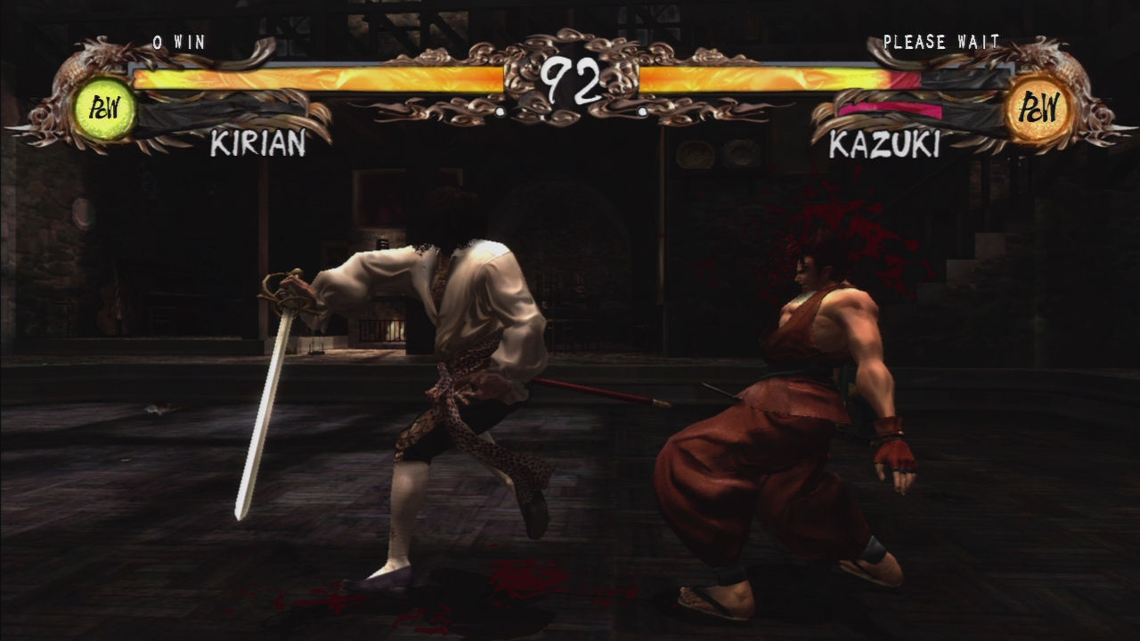 The fatalities were a back-of-the-box selling point for the Western releases, and they certainly don’t disappoint. If the final blow of a match is a power slash or a rage move that deals slash damage, the victim will meet one of several grisly fates, depending on which part of their body was hit. A stab in the gut causes the unlucky duelist to pour fountains of blood from their stomach, as they slowly stagger over. A severed hand ends with the victim clutching the bleeding stump, rolling in agony, as their weapon sticks in the ground with the hand still attached. You can even be sliced in half along the waist, sending both halves flying apart. Unlike earlier Samurai Shodown games, Sen doesn’t linger on the details of these events, and they happen immediately after a hit, with no elaborate theatrics or “Finish Him” nonsense. They’re simply jarring and brutal, and it often really feels like you just fought a duel to the death. Unfortunately, there are no character-specific fatalities (or suicides, for that matter), but it never feels like something’s missing. While most of the game’s animations were clearly posed by hand, the fatalities and character intros seem to have been motion-captured, which gives them a realistic weight.