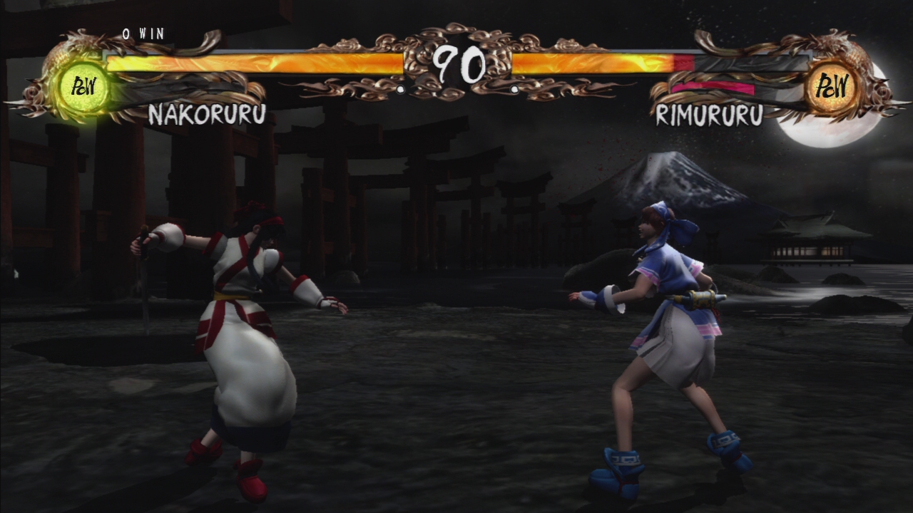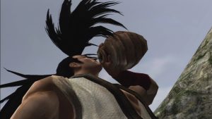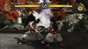 The returning characters are all popular series veterans: Haohmaru, Genjuro, Nakoruru, Rimururu, Ukyo, Kyoshiro, Jubei, Wan-Fu (with his SS1 scimitar back), Galford, Hanzo, Charlotte, Kazuki, and Sogetsu. Joining them are 13 newcomers, including three bosses. While they fail to live up to the standards of iconic character design set by the earlier games, they are still fun to play as, and have distinct personalities. Regrettably, there are many “clones,” who even share each other’s idle stances. But in most cases, they are still far more differentiated than in early Tekkengames, with the bulk of each character’s move set being unique. It wouldn’t be fair to compare the clones to the Slash/Bust system either, since they all have different normals. There’s no comeback for fan favorites Earthquake and Cham Cham, but they would have been quite at odds with the game’s realistic aesthetics – the Viking character Garros already is. Sen definitely seems to favor its returning cast a bit, since they tend to have larger and more versatile movesets. This doesn’t mean that the newcomers don’t have depth, though.