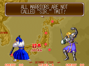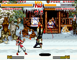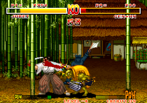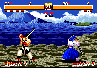 The only major difference between the Japanese and World versions on the Neo Geo is the missing voiced narration in the intro. Samurai Shodown was ported to various consoles following its success in the arcades. Most of the home ports were handled by Takara, who often worked with SNK on console conversions. The Genesis and SNES releases of Samurai Shodown both take many shortcuts and liberties with the source material to make the transition. Naturally, all of the scaling effects are gone. But otherwise, the most obvious alterations are with the graphics.