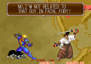 As a fun bit of trivia, Mai Shiranui from Fatal Fury 2 shows up in Haohmaru’s ending. Jubei also remarks that he’s not related to the Jubei from Fatal Fury 2.