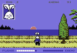 Samurai Warrior is an adventure beat-em-up by Beam Software and published by Firebird that follows Miyamoto Usagi on an ominous quest along the rice fields and mountains of 17th century Japan. The roads are riddled with ninjas, peasants, traveling monks and monsters and your goal is to survive with honor intact. The young panda daimyo Noriyuki has been kidnapped by Lord Hikiji, the very same man responsible for the death of Usagi’s father and the scarring over his left eye. Hikiji has also put out a bounty for the head of Usagi, enticing other ronin and bandits with their lust for money to hunt down the lonesome rabbit. Not everyone is out to take him down however and along the way Usagi meets many honorable characters and friendly villagers that offer their advice or services.