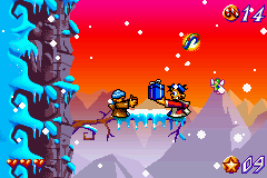 Other sections that make using the snowball or fairy flight mandatory also suffer the same problem, sometimes requiring good timing and reflexes that the game just can’t make good on. Most of the time, you only really need most of these to reach the secret areas where you’ll find the missing kids (handing them the presents instead of finding presents), and those are an optional goal that just unlock mini-games and a sound test when you beat the game. But it’s still frustrating that all these new skills often feel very limited or actively hamper your ability to play.
