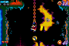 At the very least, Advance makes an enormous improvement on its predecessor by featuring battery-backed saves instead of passwords. You’re given three save slots, and the game saves after beating a level, so there’s no worry of having to replay earlier stages. You even have unlimited continues, meaning you can jump right back in after losing all your lives. The only cost to continuing is that you lose all your magic stars, but they can be found again easily enough.