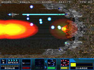 The 640×480 pixel graphics are just a bit too clean, although the backgrounds are nicer than the usual black “outer space” that tend to permeate the average Gradius game. It’s not without creativity though. Astro Port’s take on the “giant multi-legged walker thing”, a monstrosity with parts that spread into the background and has a huge human eye in the middle, is easily as cool as anything Konami has ever done. The thumping techno soundtrack is alright, too, though it ultimately lacks personality. While not quite a top-tier classic, it’s a nice alternative to cutesy moe bullet hell shooters, and is still a recommended diversion.