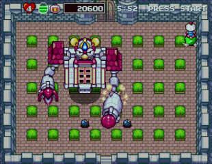 Saturn Bomberman’s storyline introduces a new villain by the name of Mujoe, who would become one of the franchise’s most recurring villains alongside Bagura. He’s the leader of the HigeHige Bandits, which mostly consists of an army of underling robots not unlike the Servbots in Mega Man Legends, and Dr. Mechado serves as his scientist assistant who provides the tech. This game also serves as the first appearance for Dr. Ein (called Dr. I here), a friendly scientist who plays the role of Bomberman’s commander and gives him his missions in various games. Mujoe’s crew discovers the Crystal Tower and awakens a sealed monster known as Crator with the intention of controlling it for their nefarious purposes. As always, it’s up to White and Black Bomberman to clean up the mess by collecting the crystals needed to seal away Crator and defeat Mujoe and the HigeHige Bandits. Outside of Japan, Mujoe’s name was changed to “Mr. Meanie” and the HigeHige Bandits were referred to as “The Meanie Gang”, though their names would be reverted from their next appearance onward. Though still conceptually straightforward, Saturn Bomberman offers the strongest story presentation yet through beautiful anime-style cutscenes provided at a few key moments throughout and is the first entry to feature voice acting beyond grunts and shouts in both English and Japanese.