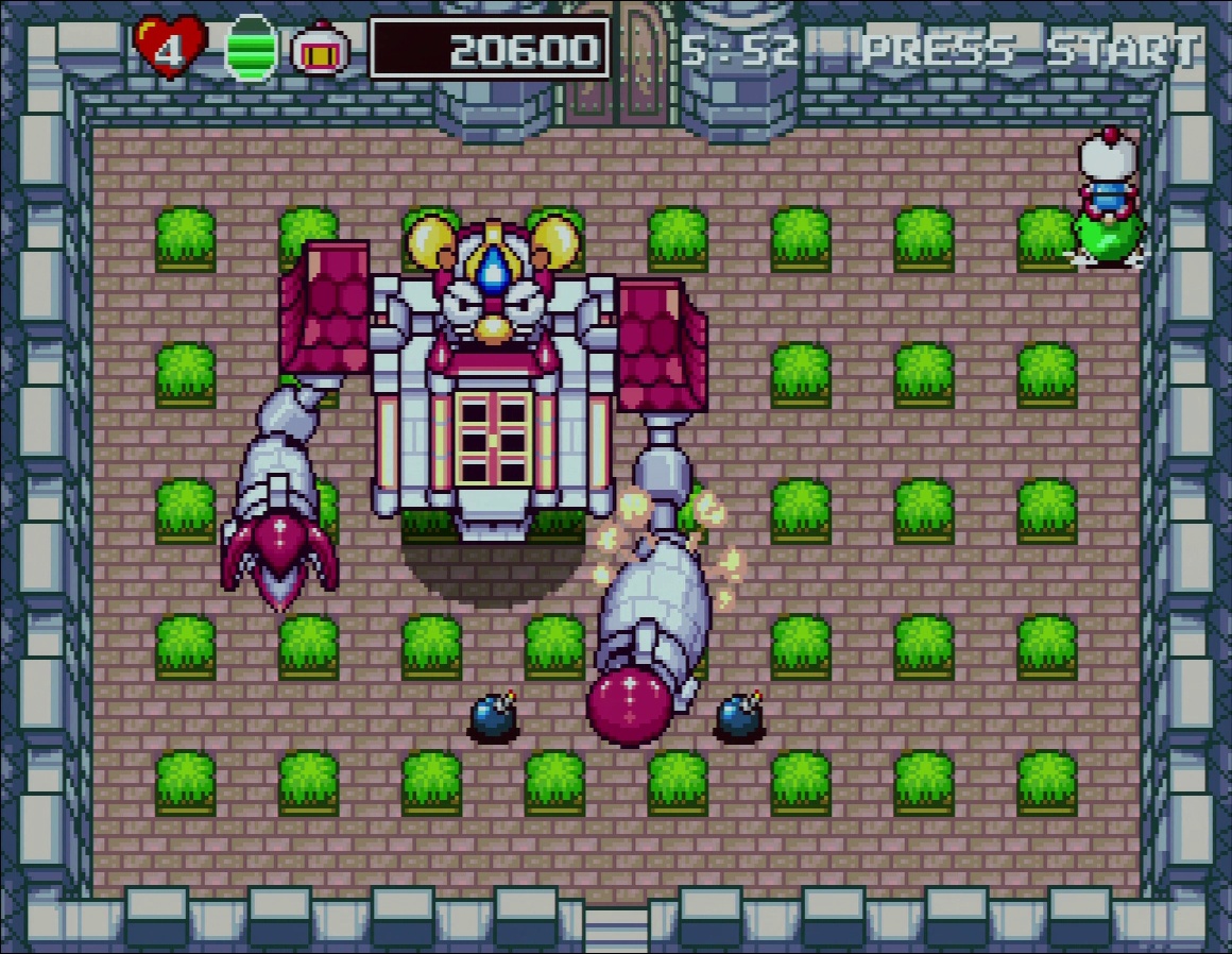 Beyond the usual main game, there’s also the Master Game, which serves as both a score attack mode and a secondary campaign of sorts. Adorning a givery similar to the one worn by Dragon Ball’s Goku, Bomberman is tasked with climbing 20 floors of a tower that’s home to an entirely exclusive batch of bosses. This mode changes some of the rules compared to the main game, reintroduces some of Bomberman’s oldest foes, removes the ability to carry some power-ups between levels and gives the player only a single life (but lots of easily obtainable hearts) to complete all 20 floors in one go. It’s not as challenging to complete as it sounds and the five Bomber Instructors are some of the most unique bosses yet, including a Bomber literally made out of bombs, a Bomber that uses a staff similar to that of Sun Wukong, and a Bomber capable of turning into a dragon. Upon completing the mode (or failing), you’re given a rank based on your performance, encouraging you to clear it faster and faster to obtain the best one.