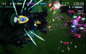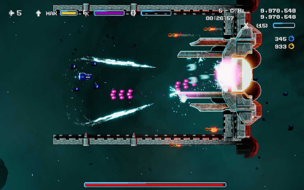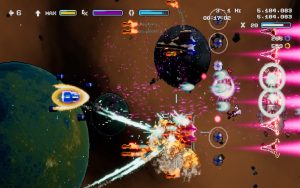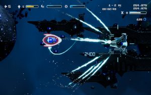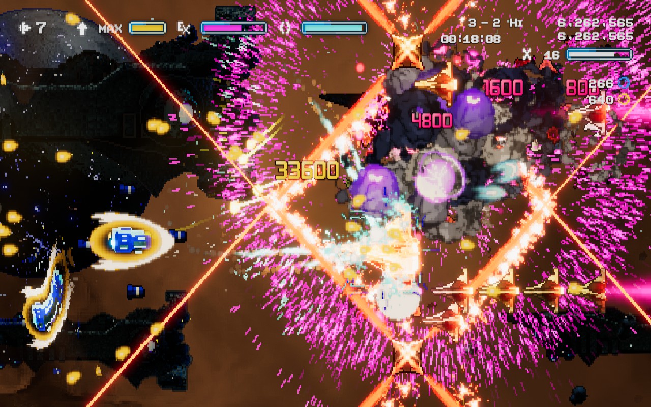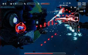 While the game offers plenty for you to do, its presentation can make things feel repetitive. The entire game is set to a space backdrop with the occasional large ship or meteor field, so levels tend to blend together. The amount of enemies on offer is also quite small, so it doesn’t take too long to see repeat formations and adapt to your foes. Boss fights are thankfully more interesting, especially one against a massive battleship that you have to fly inside and find weak spots to destroy. The soundtrack is a highlight of the experience and was composed by Ed Tremblay of Studio Mudprints, a YouTube channel dedicated to covering shoot-em-ups of all kinds. Ed Tremblay was also credited as a tester on Hazelnut Hex.
