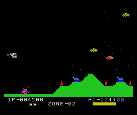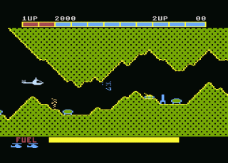 The only real ports of Scramble at the time of release in North America were for the Vectrex and Commodore 64. The Vectrex one looks pretty awesome if you’re into vector graphics. It was called Scramble Wars in Japan. There appear to be several versions of Scramble for the Commodore 64, but many are either ripoffs or homebrewed. Ports were also developed for the PC-6001, PC-8001, and Pyuuta (Tomy Tutor) computers. In 2012, Bob DeCrescenzo released an excellent homebrew port for the Atari 7800.