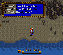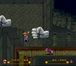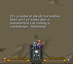 If there’s one thing Secret of Evermore is full of however, its glitches and secrets. Sometimes these actually work in conjunction to make the game feel more mysterious than it would otherwise. Although I’ve personally only witnessed some very slight visual bugs, there’s apparently a whole list of stuff that can go wrong if you do certain things (beware, some are game-breaking). The game’s manual lies to you too, as there’s a bit in there about weapon masters that can supposedly teach you new skills, but that’s complete rubbish. There’s also a special item called the Magic Gourd whose effect is specified as “unknown” within the game. Its real effect is actually: nothing at all.