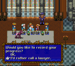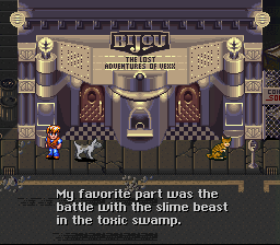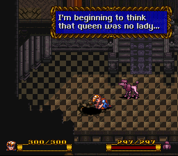 In conclusion, Secret of Evermore is at the very least a history piece for being the only Square game to be made in America, at least before the company ended up buying Eidos. If there’s any word that describes this game, it’s “humble”, and stands in far contrast to the more ridiculous anime designs and melodramatic stories that Square games became known for. There are no funky hairdos and over-the-top character designs. Nobody ever turns into an angel in a post-cataclysmic final battle in space while flying around in a wormhole. Just a boy and his dog going on an adventure. The graphics are mostly realistic and the music doesn’t even try to upstage the action. There’s also a little bit of humor added in, just to make absolutely sure the game doesn’t take itself too seriously. But what kind of game does that make? Elegantly understated or just weak programming? It’s probably a little bit of both.