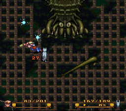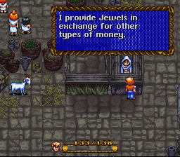 Speaking of shopping, Secret of Evermore is one of the few games that uses more than one type of currency (talons in Prehistoria, jewels in Antiqua, the usual gold coins in Gothica and credits in Omnitopia). There are money changers that will convert one type of money into another but, as in real life, watch out for the steep exchange rate. The rest of Antiqua involves you helping out Horace in his archaeological dig by trudging through the local ruins looking for powerful artifacts, which the hero will give out to the first evil impostor that comes along, as per RPG protocol.