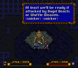 The plot won’t win any awards for originality, but there are quite a few well-written gags to keep the whole thing feeling fresh. Most of the characters are completely glossed over and maybe it’s for the best. You have to remember that Final Fantasy IV and VI were already out at the time and although both games had good plots, they were definitely a sign that games would become increasingly verbose, whether it was necessary or not.