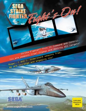 Released only in the arcades on the Naomi hardware, Sega Strike Fighter is only listed here by virtue of including “Strike Fighter” in its title. It actually bears little resemblance in theme to the older After Burner games, and instead plays much closer to a game like Air Combat – which is to say, slower and slightly more realistic. The game is set up similarly to G-LOC, in that you have a time limit to destroy a certain number of bad guys before you can move on. You can choose your missions as well. Once again there is a a life bar, but it’s all too easy to turn upside down, bang into the ground and severely damage your hi-tech fighter.