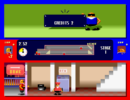 About the Sega Ages version - These appear to be straight arcade ports, without any major graphical enhancements. The original Bonanza Bros. used high res 2D, and looks practically identical here, although Tant-R has seen a small upgrade. I guess it's better than the previous home versions (Bonanza Bros. appeared on the Genesis, and there were a couple of releases for Tant-R.) There's some arranged music, but otherwise, that's about it.