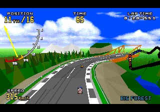 About the Sega Ages version - This is definitely the closest to arcade perfect as you can get. It's displayed at a higher resolution than the arcade version, and runs at a full 60 frames per second, although I've been told there are still minor graphics glitches. Otherwise, there aren't really any improvements, and the draw distance is still a bit limited. Unfortunately, it lacks a lot of the extras from the 32X and Saturn versions - none of the extra tracks, cars or music have been included. However, there are three brand new tracks made specifically for this version, for a total of six.