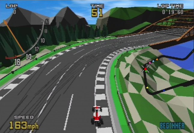 What is it? - One of the first true 3D arcade racers, Virtua Racing predates textures maps and fills the world with flat polygons.