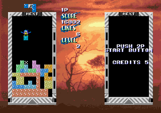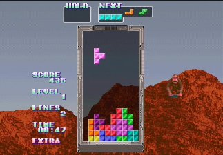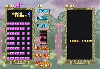 About the Sega Ages version - The original Tetris has a System-16 arcade version, as well as the home Mega Drive conversion, and another arcade version for the System E, which I think was based off the Master System hardware. Flash Point is similar to the Flash mode in Columns, where you're given a predetermined layout and need to eliminate a single block. (The Mega Drive version is unlockable by highlighting the "Machine Type" and holding right.) Bloxeed is another variation where the bottom grows up every few lines, and there are a variety of special power-ups obtained by destroying certain lines. (The System-16 and System C versions are unlocked the same as above.) They're alright, but have some annoying quirks - for instance, you can't rotate pieces at all if they're next to the borders. The New Century mode barely has any additions over the regular Tetris beyond fixing the rotating block issues, enhancing music and adding few different play modes. It also curious adds a monkey as the mascot. Some of the other Tetris include minor characters from other Sega games, like Flicky and Opa Opa.