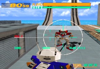 The PS2 version is a very faithful conversion of the arcade original, featuring far better character models, crisper graphics, better texturing on both the robots and the arenas, and a smoother frame rate. Although there aren't any true dual stick controllers for the PS2, the Dual Shock sticks emulate it pretty well, at least better than any other console controllers in the past. There is a setting to use the Saturn PS2 pad, if you're comfortable with it.