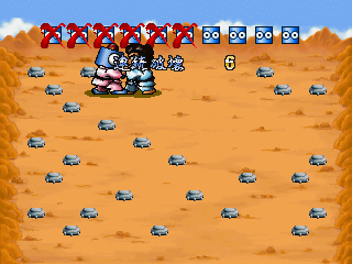Sanshiro must grapple with a robotic opponent as they try to flip each other onto a nearby mine. Beating 10 opponents in a row unlocks the Bomberman Fight commercial.