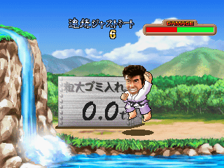So it was only a matter of time before he started showing up in video games. Some of these appearances are minor cameos: he made his first (albeit brief) Western debut in Sonic & All-Stars Racing Transformed, and more recently shows up as a support unit in Project X Zone 2. But before all that, he made his video game debut in Segata Sanshiro Shinken Yuugi, a compilation of Sanshiro-themed mini-games released toward the end of the Saturn life cycle (less than a month before the Dreamcast’s release). As a marketing vehicle, Shinken Yūgi faithfully captures the Segata Sanshiro spirit. But as a game, its uninspired ideas of what constitutes amusement leave a lot to be desired.