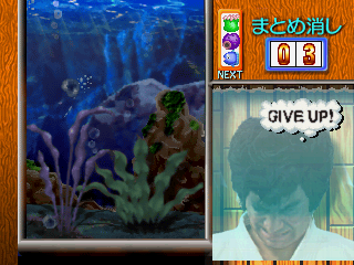 A simple Columns-esque match-three puzzle game. Pulling off combos keeps Sanshiro from drowning, and eliminating 15 fish with a single move unlocks the Deep Fear commercial.