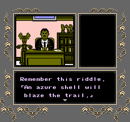Every now and again, the game will change things up with sections where you navigate mazes through moving from room to room in the cardinal directions. These sections tend to be the most intense in terms of puzzling, since you have to navigate your way around and the later mazes are the only places where you can get a game over. (On that note, passwords for your current position can be accessed by pressing Select at any time, and make sure to note them since they’re 48 characters long!)
